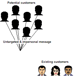 Mass marketing (sketch, thickness of lines reflects personalization,
